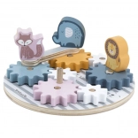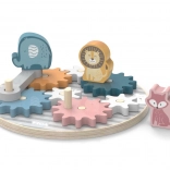 Wspieraj zabawę i rozwój z naszymi drewnianymi zębatymi klockami, gdzie mechanika staje się grą. Zestaw zawiera 7 kolorowych kół zębatych, 3 zabawne figurki zwierząt oraz podstawę, na której można umieszczać koła tak, aby jedno wprawiało w ruch pozostałe.