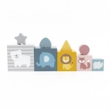 • Dzieci mogą dowolnie układać klocki, uczyć się liczb, dopasowywać kształty w sorterze i poznawać zwierzątka