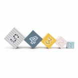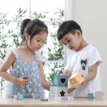 • 5 pudełek o różnych rozmiarach i 4 geometryczne klocki