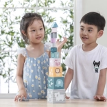 Wieża z klocków oferuje interaktywny sposób na rozwijanie dziecięcej wyobraźni i logicznego myślenia.