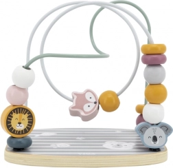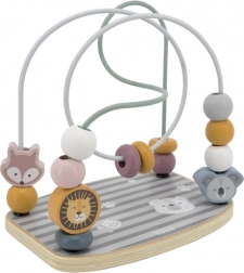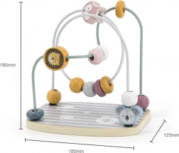 Ten edukacyjny labirynt z kolorowymi koralikami i kształtami zwierząt zaciekawia dzieci i stymuluje ich kreatywne myślenie.