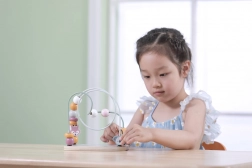 Koralikowy labirynt wspiera poprawę koordynacji ręka-oko i małej motoryki, gdy dzieci przesuwają koraliki po drucianych ścieżkach.