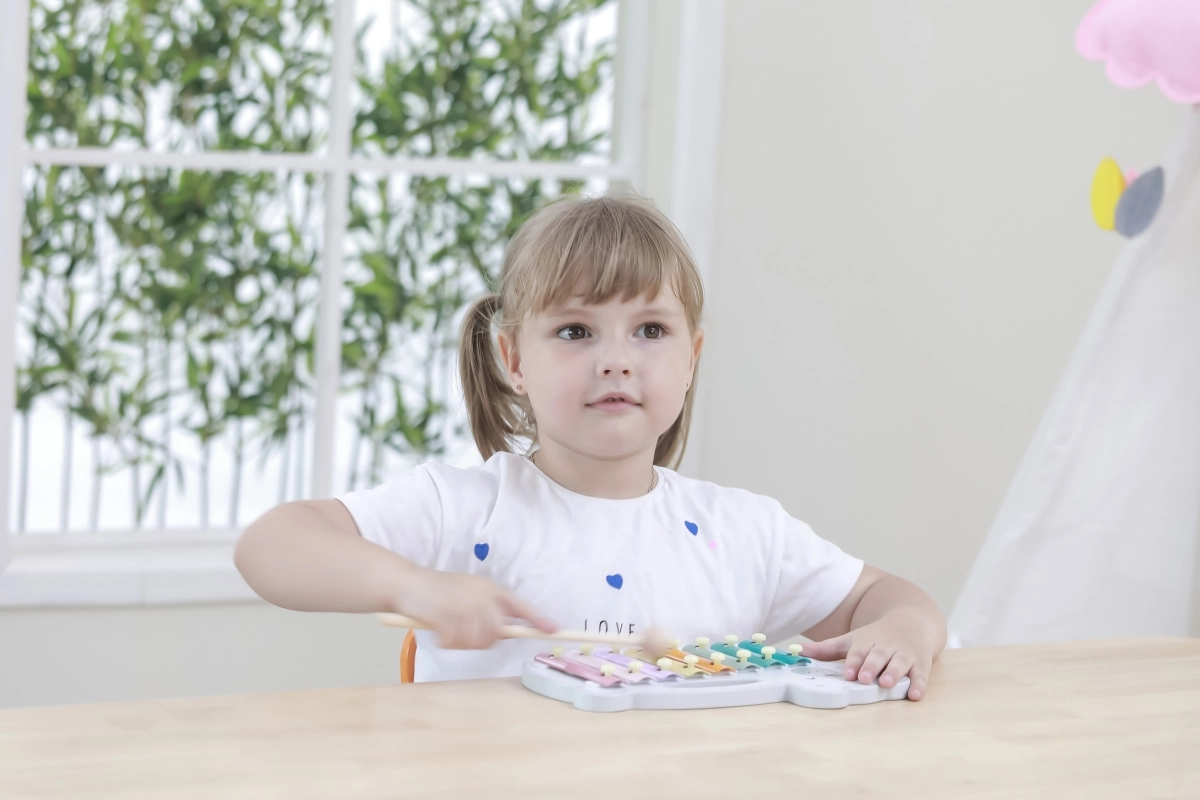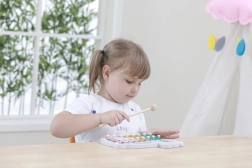 Wytrzymała konstrukcja, zaokrąglone krawędzie i kompaktowe wymiary zapewniają bezpieczną i komfortową zabawę nawet dla najmłodszych. Ksylofon to świetny wybór do rozwoju wrażliwości muzycznej, koncentracji i cierpliwości.