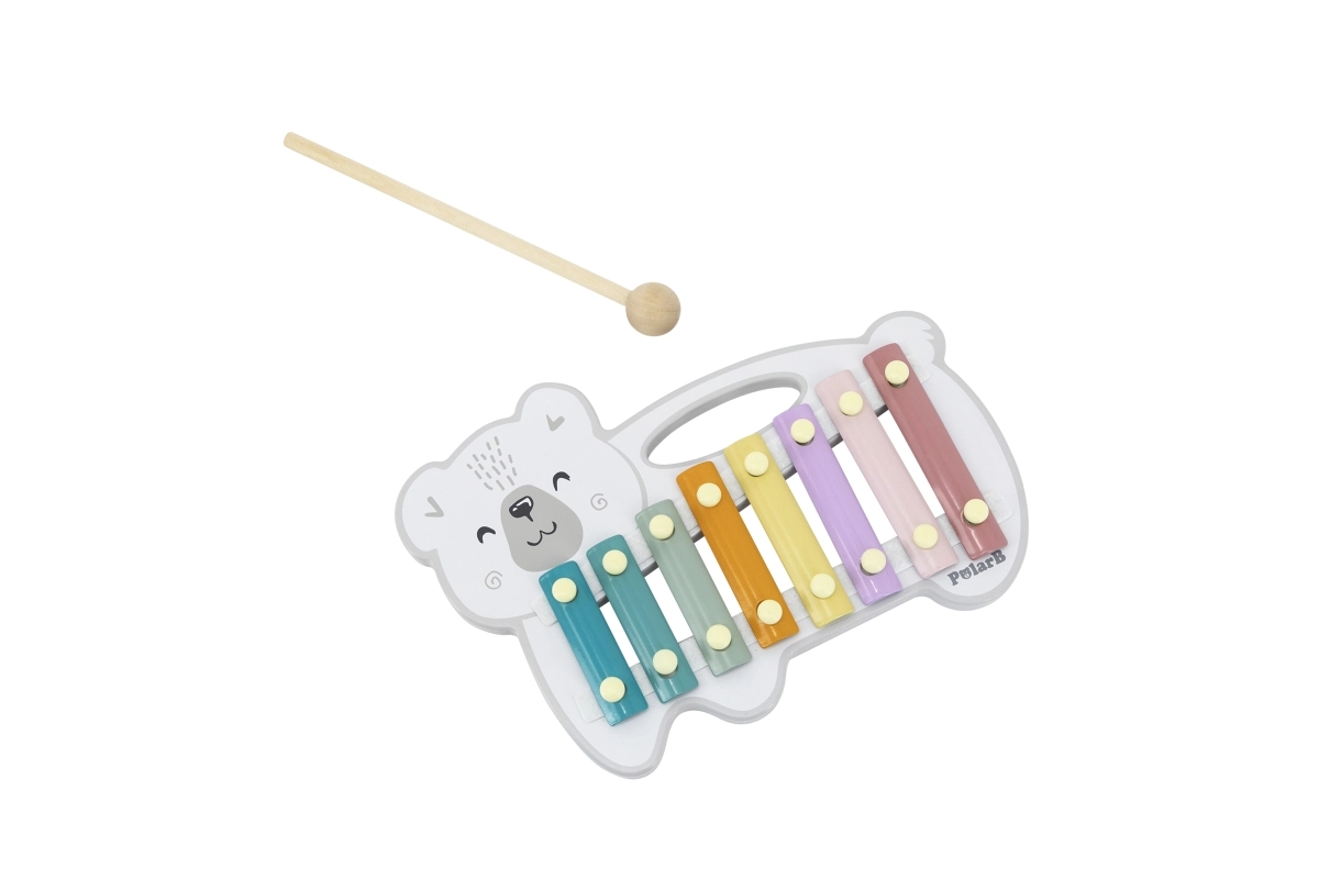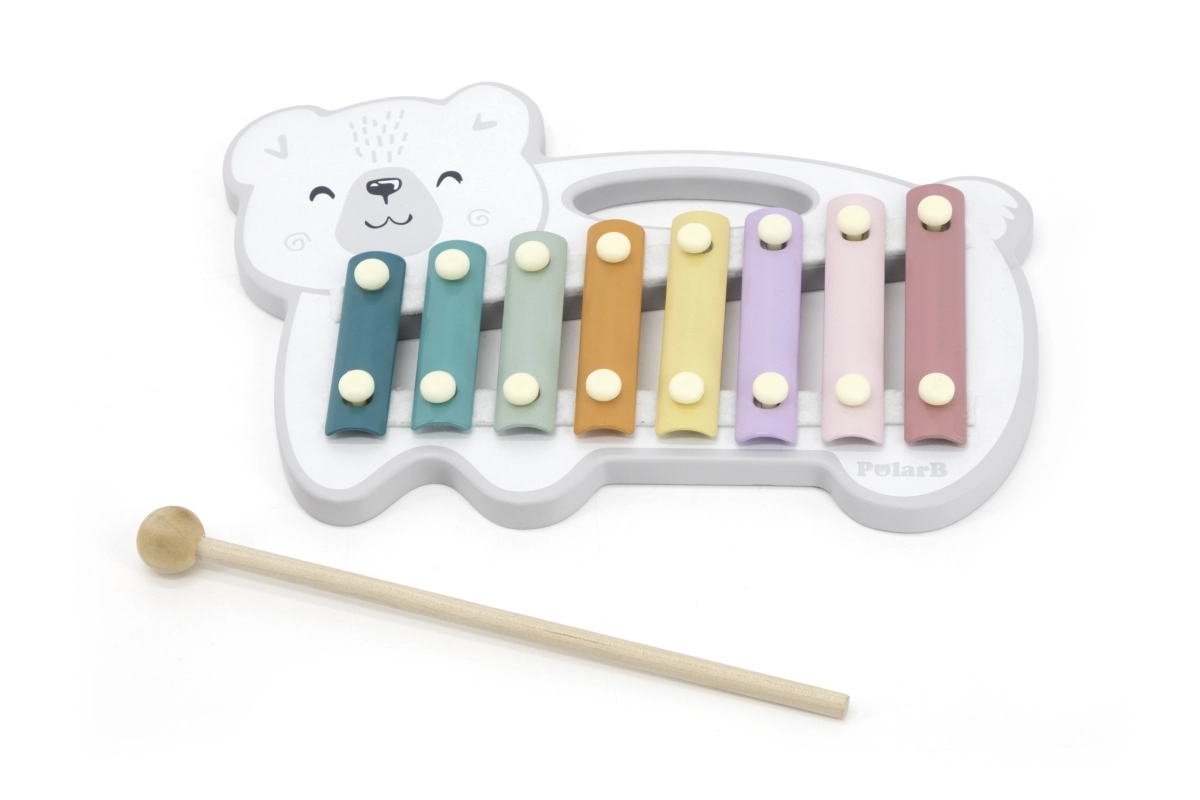 Rozbudź dziecięcą wyobraźnię z uroczym ksylofonem w kształcie niedźwiedzia polarnego. Ten wysokiej jakości instrument muzyczny z ośmioma kolorowymi klawiszami wspiera rozwój słuchu, małej motoryki i koordynacji ręka–oko. Kompaktowe i bezpieczne wykonanie jest idealne do pierwszych muzycznych odkryć dla dzieci od 18 miesięcy.