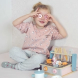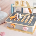 Elementy interaktywne, takie jak obrotowe pokrętła i para płyt grzewczych, dodają gotowaniu realizmu i motywują dzieci do dłuższej, bardziej skupionej zabawy.