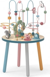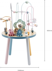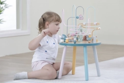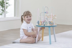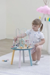Labirynt z koralikami na solidnym drewnianym stoliku zachęca dzieci do odkrywania. Kolorowe kształty i urocze zwierzątka (miś, lis, jeż) motywują do ruchu paluszków, precyzyjnego chwytania i tworzenia własnych opowieści. Idealny wybór do domowego stylu „Montessori” nauki przez zabawę, który rozwija cierpliwość, koncentrację i wyobraźnię.