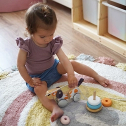 Zabawka rozwija koordynację, kreatywność i wyobraźnię oraz pięknie uzupełni kolekcję drewnianych zabawek w stonowanych barwach. Odpowiednia do codziennej zabawy w domu i w podróży.