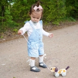 Piesek na sznurku zachęca dzieci do chodzenia, wzmacnia koordynację i uczy utrzymywania równowagi. Dzięki wygodnemu sznurkowi prowadzenie jest naturalne i przyjemne.