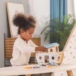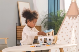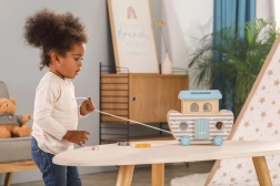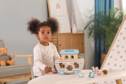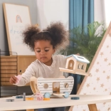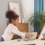 Wysokiej jakości drewno, zaokrąglone krawędzie i przyjemne kolory zapewniają bezpieczną zabawę nawet dla najmłodszych. Idealna do pokoju dziecięcego i w podróż.