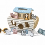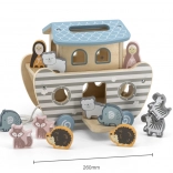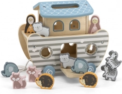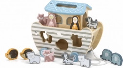 Ta wysokiej jakości drewniana Arka Noego łączy kilka elementów zabawy w jednej sprytnej zabawce: dzieci wkładają zwierzątka do odpowiednich otworów, ciągną łódkę na sznureczku i tworzą własne historie. Stabilne wykonanie i przyjemne kolory wspierają koncentrację i rozwój wyobraźni.