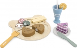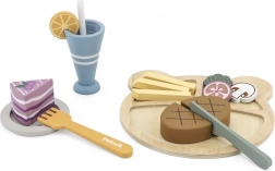 Drewniany zestaw obiadowy POLARB od VIGA jest gotowy do serwowania pyszności ze stylem. Na talerzyku dzieci mogą ułożyć stek, frytki, warzywa i deser, a wszystko „popić” napojem ze słomką. Realistyczne dodatki zachęcają do naśladowania dorosłych oraz rozwijają samodzielność i słownictwo.