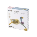 Dzięki solidnemu drewnu i wysokiej jakości wykonaniu zestaw jest odporny na codzienną zabawę. Odpowiedni do dziecięcej kuchni, kącika zabaw i w podróży. Zabawa produktami spożywczymi wspiera naukę kolorów, kształtów i podstawowych zasad nakrywania do stołu.
