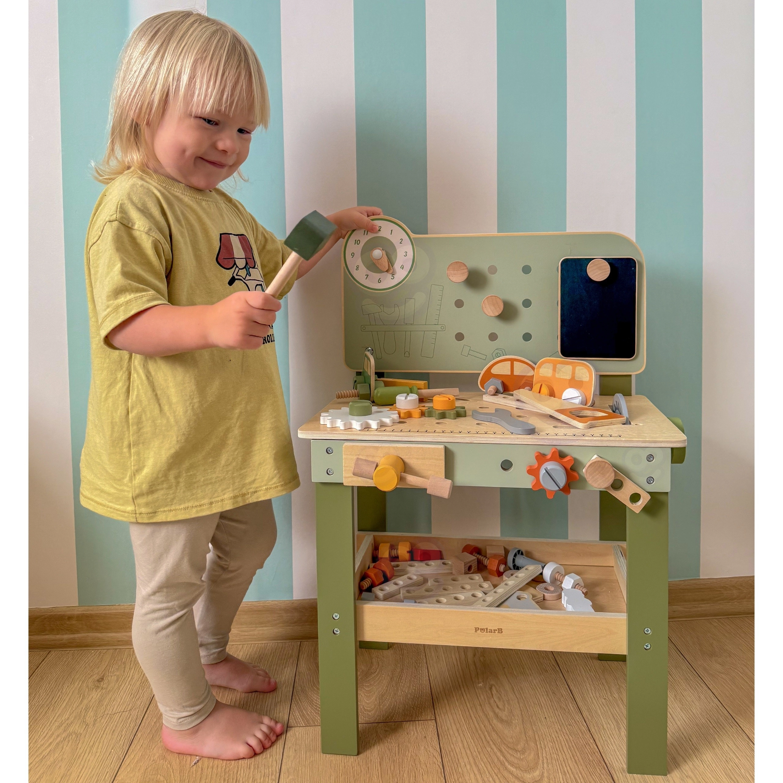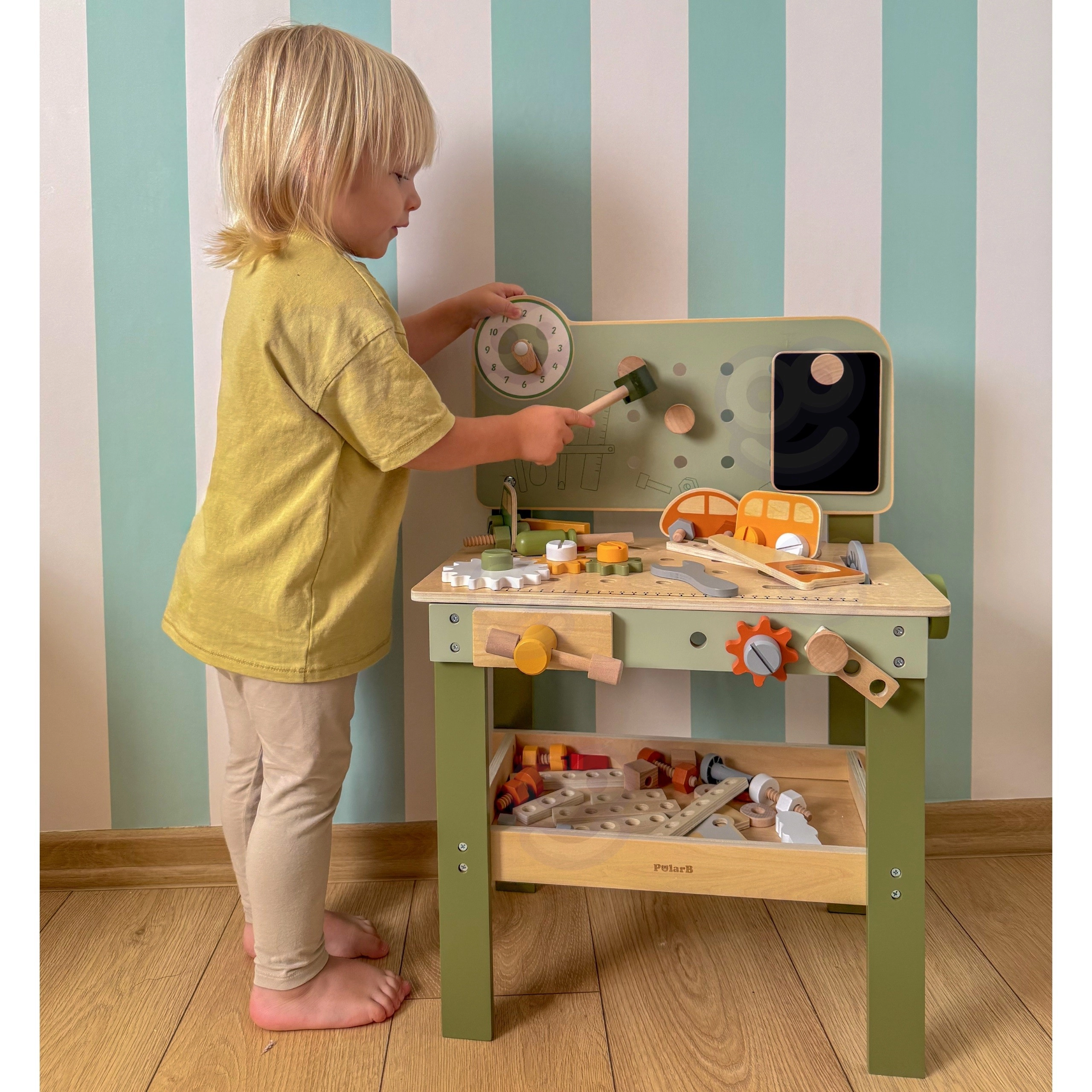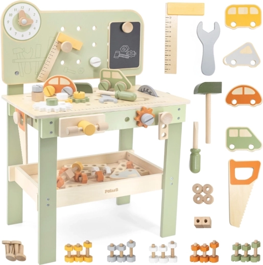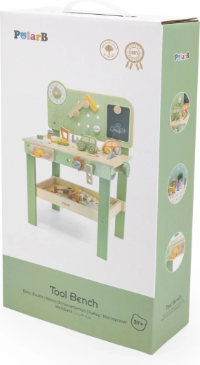Odkryj solidny i stylowy warsztat Viga PolarB, zaprojektowany dla małych majsterkowiczów od 3 lat. Dzięki drewnianej konstrukcji, płynnie obracającym się kołom zębatym i bogatym akcesoriom dzieci trenują koordynację ręka–oko i uczą się rozwiązywania zadań poprzez zabawę. Bezpieczne materiały oraz przemyślane detale gwarantują długą żywotność i wygodne przechowywanie elementów.