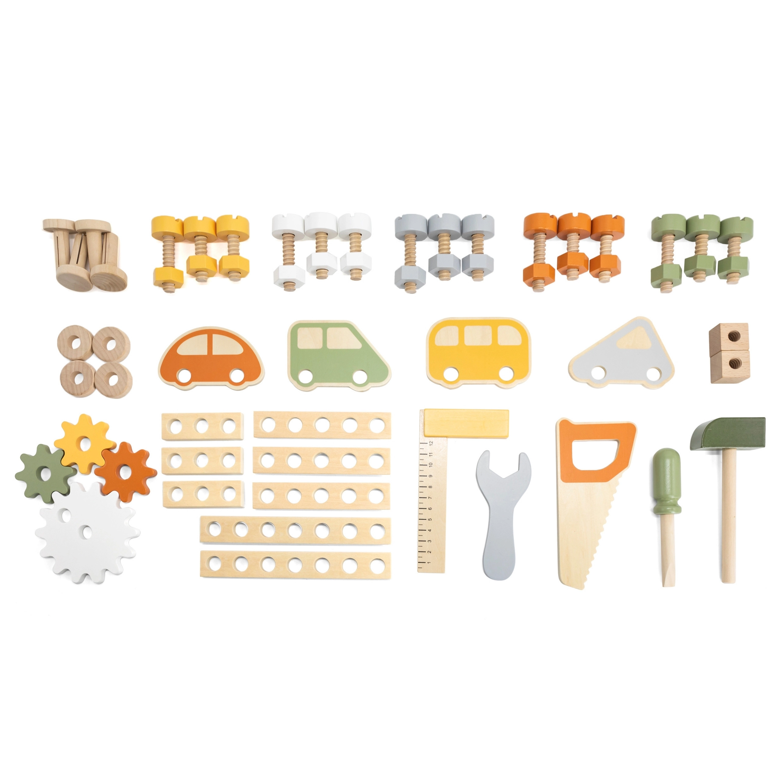Śruby, nakrętki, listwy, przekładnie i narzędzia dają dzieciom swobodę budowania, łączenia i odkrywania zasad mechaniki.