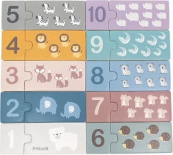 Zawiera łącznie 31 drewnianych elementów z ilustracjami zwierząt i liczb, które dzieci dopasowują i układają we właściwej kolejności. Wysokiej jakości drewniane wykonanie, przyjemne kolory i trwałość czynią zestaw świetnym wyborem do codziennej zabawy i nauki.