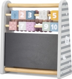 To wielofunkcyjne drewniane liczydło 3 w 1 łączy naukę i zabawę w jedno. Dzieci dzięki kolorowym koralikom ćwiczą liczenie, z przekręcanymi kostkami z cyframi uczą się rozpoznawania cyfr i prostych zależności, a na tablicy kredowej mogą pisać i rysować swoje pierwsze działania oraz obrazki.