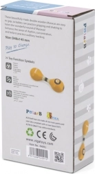 Stylowa i bezpieczna grzechotka w kształcie podwójnych marakasów wykonana jest z wysokiej jakości drewna i zaprojektowana tak, by wydawać delikatny, kojący dźwięk przyjemny dla dziecięcych uszu. Niska waga zachęca dzieci do częstego chwytania i potrząsania, dzięki czemu naturalnie rozwija się motoryka mała, rytm i koordynacja.