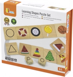 Drewniana edukacyjna układanka VIGA to zabawka ukierunkowana na rozwój zdolności poznawczych i motorycznych dzieci. Ta wysokiej jakości układanka wykonana jest z naturalnego drewna i malowana nietoksycznymi farbami, co zapewnia bezpieczeństwo Twojemu dziecku. Zestaw zawiera różne kształty, które dzieci dopasowują do codziennych przedmiotów, takich jak doniczka (trapez) czy kawałek pizzy (trójkąt).