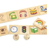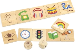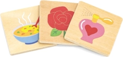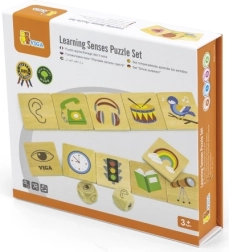 VIGA edukacyjna gra drewniane puzzle oferuje idealny sposób, jak dzieci mogą rozwijać swoje myślenie i koordynację. Zadaniem jest przyporządkować przedmioty do wybranych zmysłów, co obejmuje różnorodne codzienne obiekty.