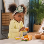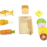 Każdy drewniany element jest starannie wykonany, aby wyglądał jak prawdziwe jedzenie, co zwiększa realistyczność zabawy.