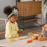 Za pomocą deski do krojenia i noża dzieci rozwijają zdolności manualne i koordynację rąk.