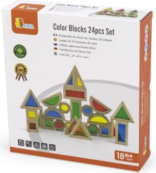 Zestaw 24 drewnianych kolorowych klocków Viga jest przeznaczony dla dzieci od 18 miesięcy. Ten edukacyjny i zabawny produkt wspiera kreatywność oraz rozwój małej motoryki u maluchów, a jednocześnie jest bezpieczny dla najmłodszych.