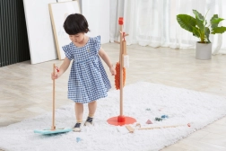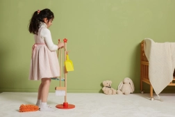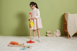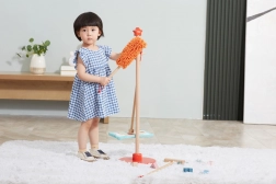 Dzięki różnorodnym narzędziom do sprzątania dzieci udoskonalają swoją motorykę i równowagę podczas zabawy.