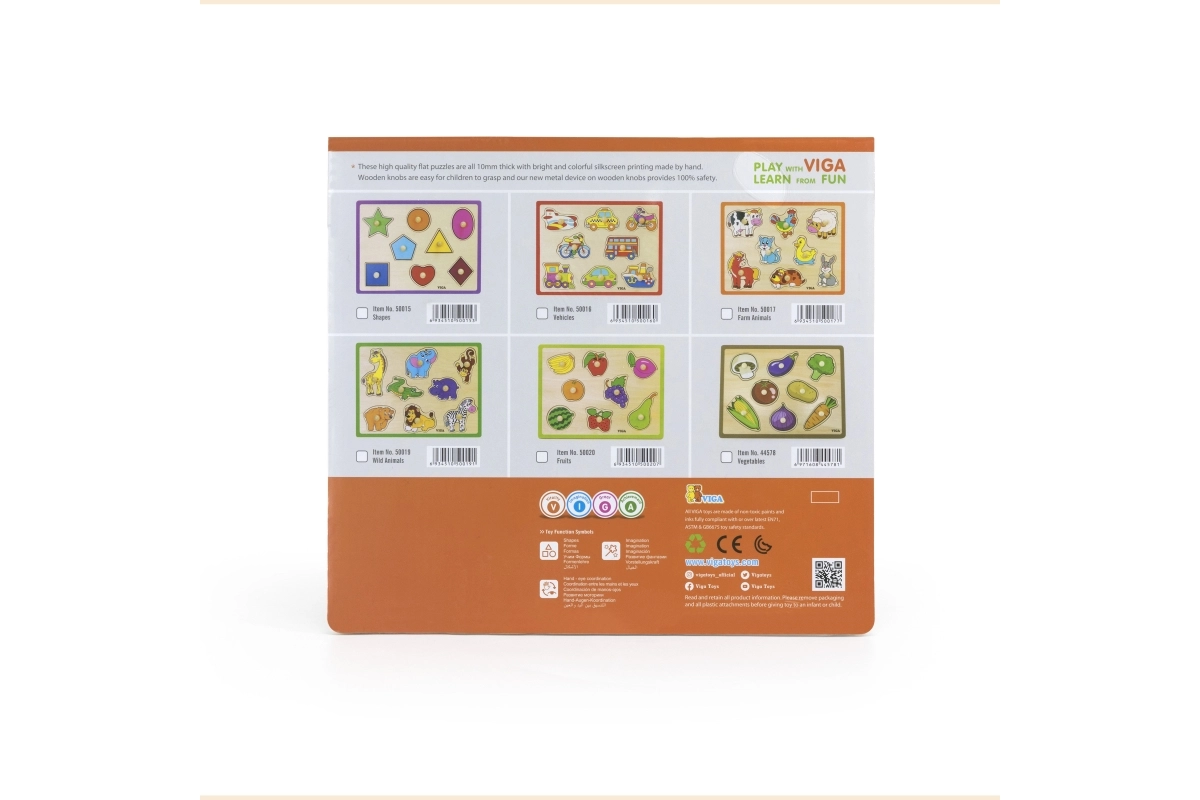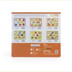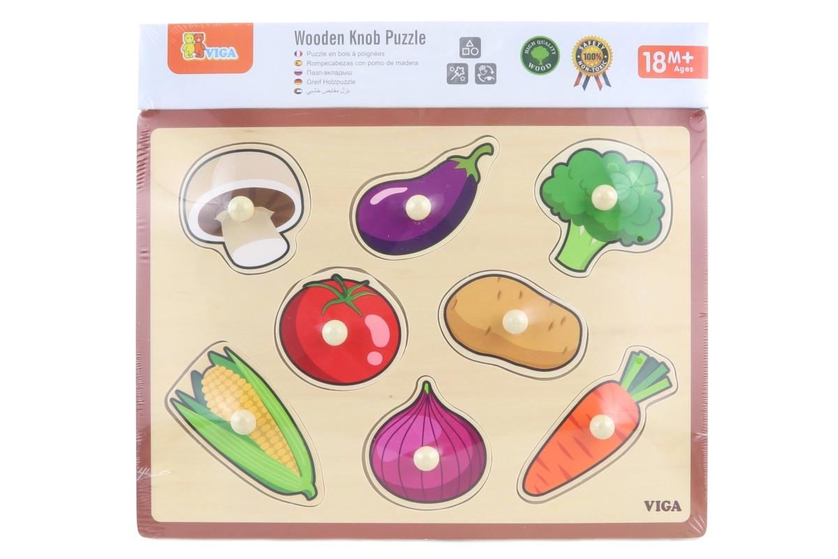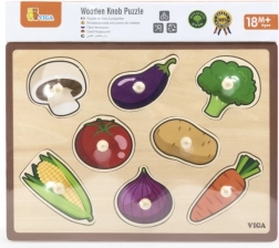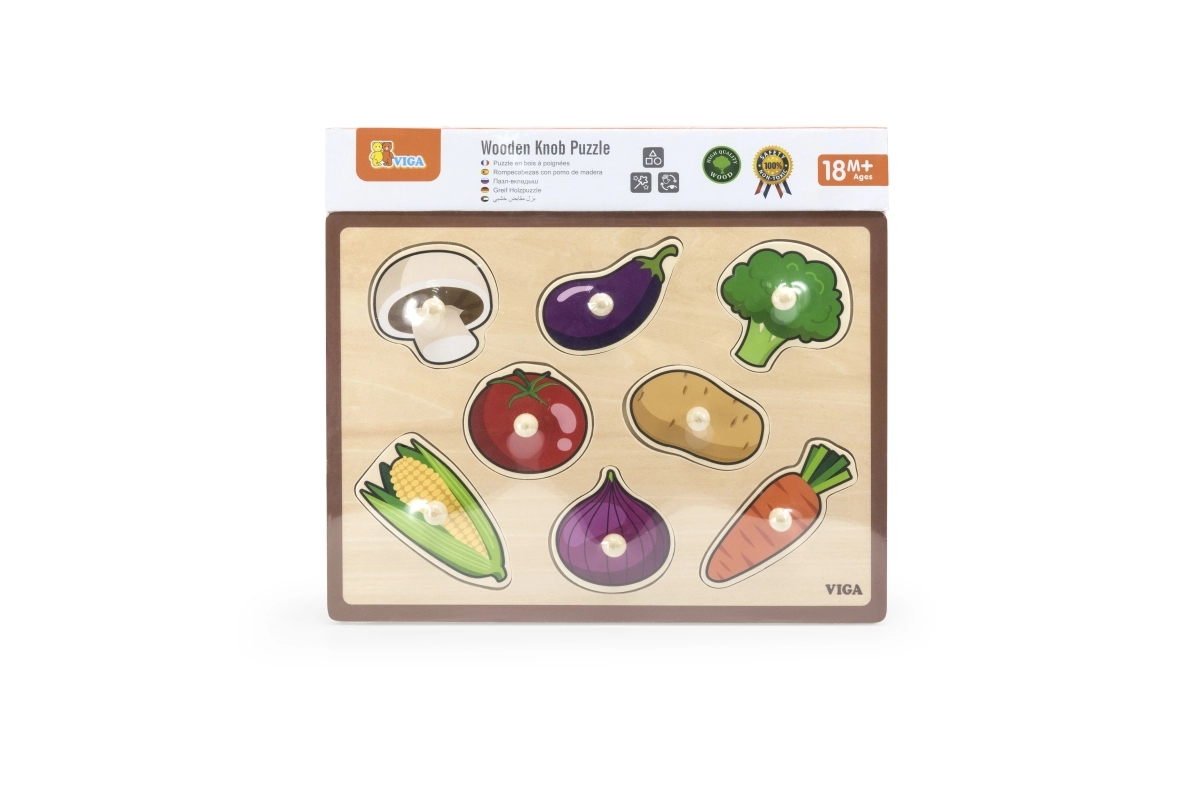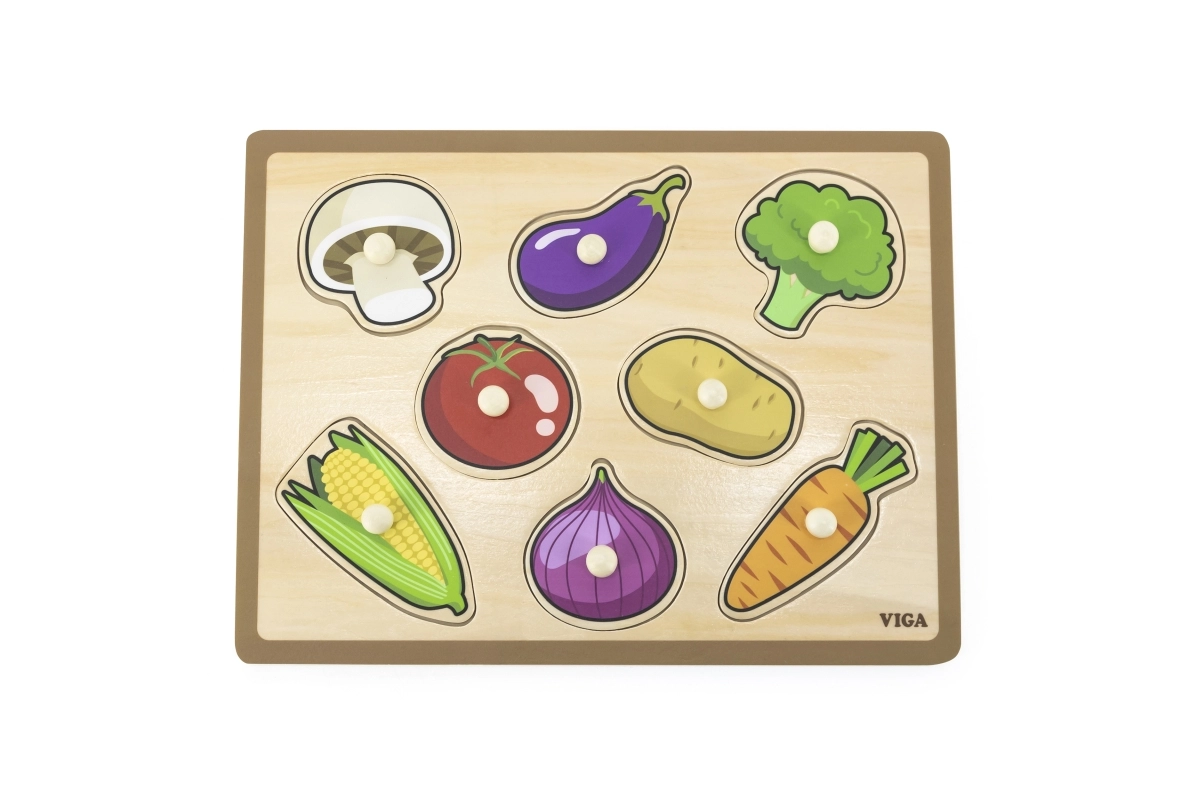 Drewniana układanka z warzywami to świetny wybór na pierwszą edukacyjną zabawkę. Dzieci w zabawny sposób uczą się rozpoznawać kształty, kolory i poszczególne rodzaje warzyw. Solidna drewniana tablica z wycięciami i gładko wykończone elementy są dopasowane do małych dziecięcych rączek.