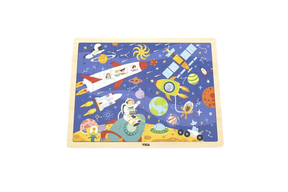 Odkryj zabawne drewniane puzzle z motywem kosmosu, które przybliżą dzieciom planety, rakiety i astronautów. Dzięki solidnej drewnianej podstawie i formatowi 40 × 30 cm układają się świetnie i rozwijają małą motorykę, logiczne myślenie oraz cierpliwość. Idealne dla małych odkrywców od 24 miesięcy.