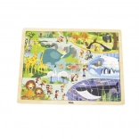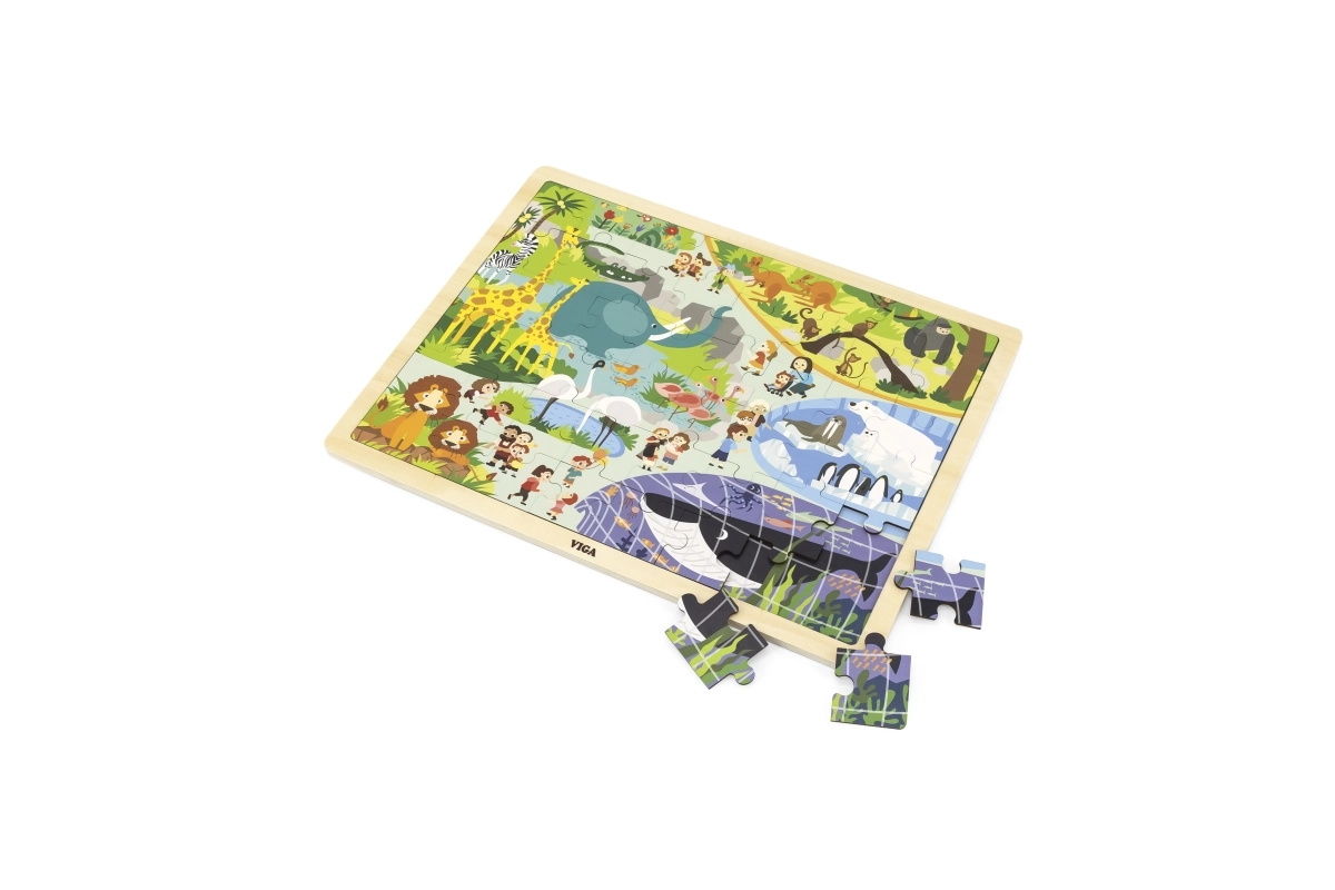 Ta urocza drewniana układanka z motywami zwierzątek z zoo ucieszy wszystkich małych miłośników puzzli. Wysokiej jakości drewniane elementy dobrze leżą w dłoni i zapewniają długą żywotność nawet przy częstym użytkowaniu. Po ułożeniu powstaje piękny obrazek o wielkości ok. 40 × 30 cm, który można składać wielokrotnie.