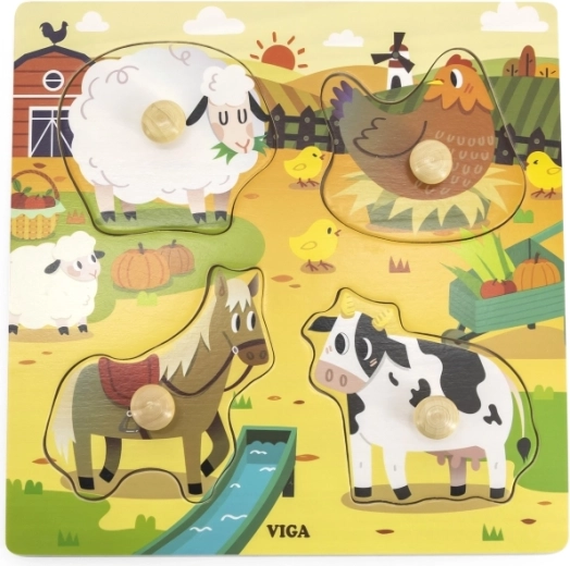 Ta drewniana układanka jest doskonałym wyborem dla rodziców, którzy chcą wspierać rozwój umiejętności motorycznych swojego dziecka. Oferuje piękne ilustracje zwierząt gospodarskich – owce, kurki, konie i krowy. Każdy element jest wyposażony w praktyczny guzik, umożliwiający łatwe uchwycenie i manipulację przez mniejsze rączki. Puzzle są zaprojektowane z myślą o bezpieczeństwie i trwałości, więc są idealne dla dzieci od 12 miesięcy.