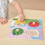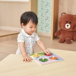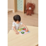 Puzzle zawierają elementy z uchwytami ułatwiającymi manipulację nawet najmłodszym dzieciom.
