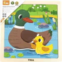 Dziecięce drewniane puzzle z motywem kaczki i kacząt przynoszą naukę przez zabawę. Dziewięć solidnych elementów układa się w drewnianej ramce, tworząc wesoły obrazek stawu. Wyraziste kolory, trwały materiał i przemyślany kształt elementów ułatwiają manipulację i pierwsze sukcesy w układaniu.