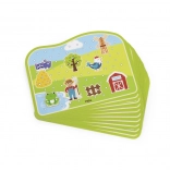 W opakowaniu znajduje się 20 drewnianych elementów, 3 sznureczki i 10 kart z wzorami. Dzieci mogą podążać za kartami lub tworzyć własne obrazki.