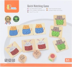 Drewniana gra szybkie dopasowywanie marki VIGA to rodzinna gra towarzyska, która trenuje spostrzegawczość, logikę i pamięć. Gracze rzucają 1–3 kostkami i szukają właściwego zwierzątka z odpowiadającym wzorem na koszulce oraz kolorem. Wykonana z wysokiej jakości drewna i malowana nietoksycznymi farbami – bezpieczna dla dzieci.