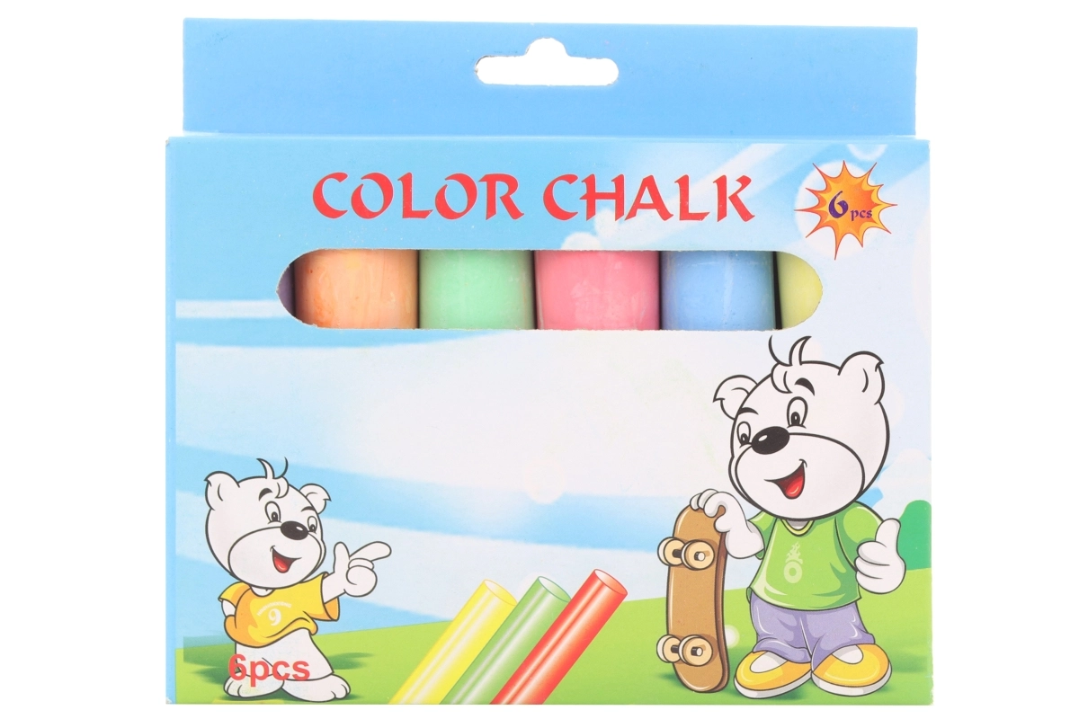 Zabawny zestaw dla wszystkich kreatywnych dzieci. Opakowanie zawiera 6 wysokiej jakości kred, idealnych do rysowania po tablicy i zewnętrznych powierzchniach.