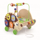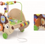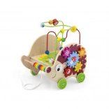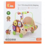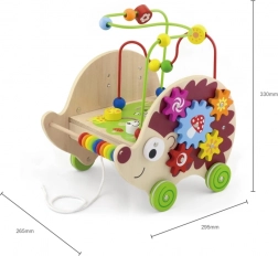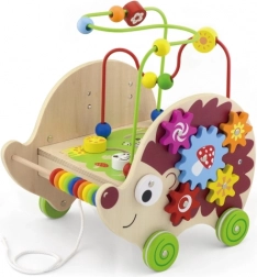 Ta multifunkcyjna zabawka do ciągnięcia w kształcie jeża od VIGA łączy ulubione elementy edukacyjne w jedno sprytne centrum zabawy. Dzieci lubią przesuwać koraliki w kulkowym labiryncie, kręcić kołami zębatymi, pokonywać labirynt ze zwierzątkami, próbować liczenia i odkrywać edukacyjne obrotowe elementy. Różnokolorowe wykonanie naturalnie zachęca do odkrywania i wspiera koncentrację.