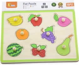 Ta wysokiej jakości drewniana układanka z owocami oferuje dzieciom naukę w formie zabawy. Każdy element ma praktyczny drewniany guzik, który ułatwia chwytanie małym rączkom. Podczas zabawy dzieci ćwiczą koordynację, cierpliwość oraz rozpoznawanie kształtów i kolorów.