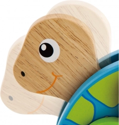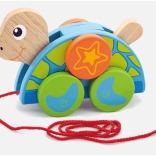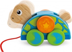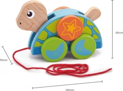 Ten kolorowy drewniany żółw do ciągnięcia został zaprojektowany tak, aby motywować dzieci do chodzenia, wspierać koordynację ruchową oraz naturalnie rozwijać małą i dużą motorykę. Solidne drewniane wykonanie i przyjemnie zaokrąglone krawędzie zapewniają bezpieczną zabawę, a wyraziste kolory i figlarny design stymulują percepcję wzrokową.