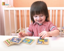 Dzięki żywym kolorom i czytelnemu motywowi puzzle wspierają rozpoznawanie kolorów i kształtów, rozwijają cierpliwość oraz naturalną radość z odkrywania. Kompaktowy rozmiar ok. 12 × 12 cm sprawdzi się w domu i w podróży, a drewniane wykonanie zapewnia długą żywotność.