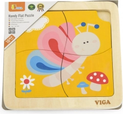 Ta urocza drewniana układanka z kolorowym motylem to świetny wybór na pierwsze spotkanie z puzzlami. Cztery solidne elementy łatwo mieszczą się w dziecięcych rączkach i układają w wytrzymałej drewnianej tacy z podkładem. Jeden element ma praktyczny otwór dla łatwego wyjmowania, dzięki czemu dzieci szybko uczą się manipulować elementami i ponownie je układać.