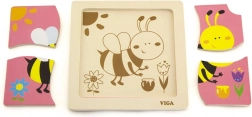 Puzzle zawierają 4 elementy z motywem pszczoły, które układają się w obrazek na podstawowej planszy.