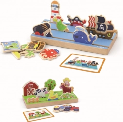 Ta zabawna i edukacyjna układanka pomaga dzieciom zrozumieć relacje przestrzenne i wspiera ich rozwój poznawczy. Dzieci mogą układać różne sceny na wielowarstwowej desce, która oferuje przygody farmy i morskie.