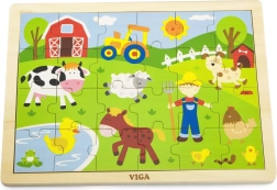 Te drewniane puzzle z motywem farmy są idealne dla dzieci, które dopiero zaczynają swoją przygodę z układankami i zagadkami. Ilustracje farmy są kolorowe i atrakcyjne, zachęcające do zabawy i nauki. Puzzle można