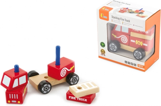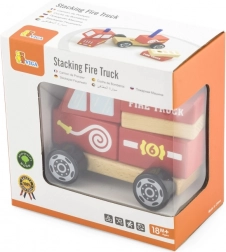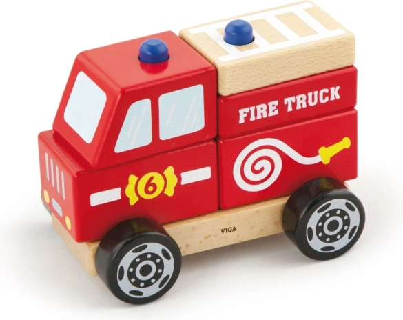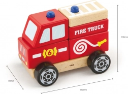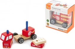 Układaj drewniane elementy na podwoziu i stwórz własny wóz strażacki. Dzieci trenują cierpliwość i koordynację krok po kroku.