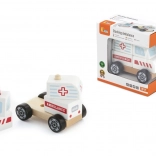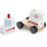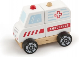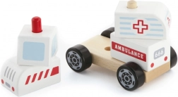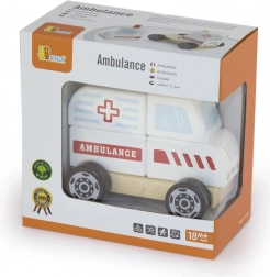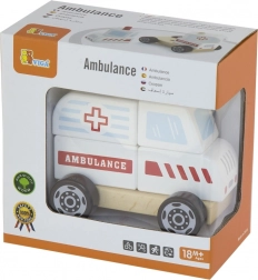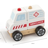 - Drewniana układanka i jeżdżący pojazd – karetka