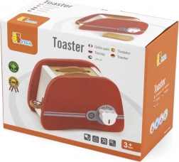 Wytrzymały i bezpieczny drewniany toster, dostosowany do potrzeb dzieci.