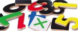 Kompletny zestaw cyfr i symboli do pierwszego liczenia, układania działań i rozwijania wczesnych umiejętności matematycznych.