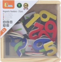 Odkryj zabawny sposób nauki liczenia: zestaw drewnianych magnetycznych cyfr w praktycznym pudełku oferuje 37 kolorowych elementów do układania liczb i prostych działań. Bezpieczne, trwałe i łatwe do chwytania elementy z łatwością przyczepiają się do powierzchni magnetycznych – idealne na lodówkę lub tablicę. Doskonała pomoc do wczesnej edukacji matematycznej i nauki przez zabawę dla dzieci od 3 lat.