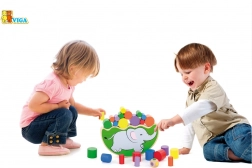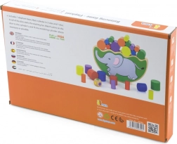 - Słoniowa baza balansowa, kolorowe drewniane waleczki, kolorowa kostka